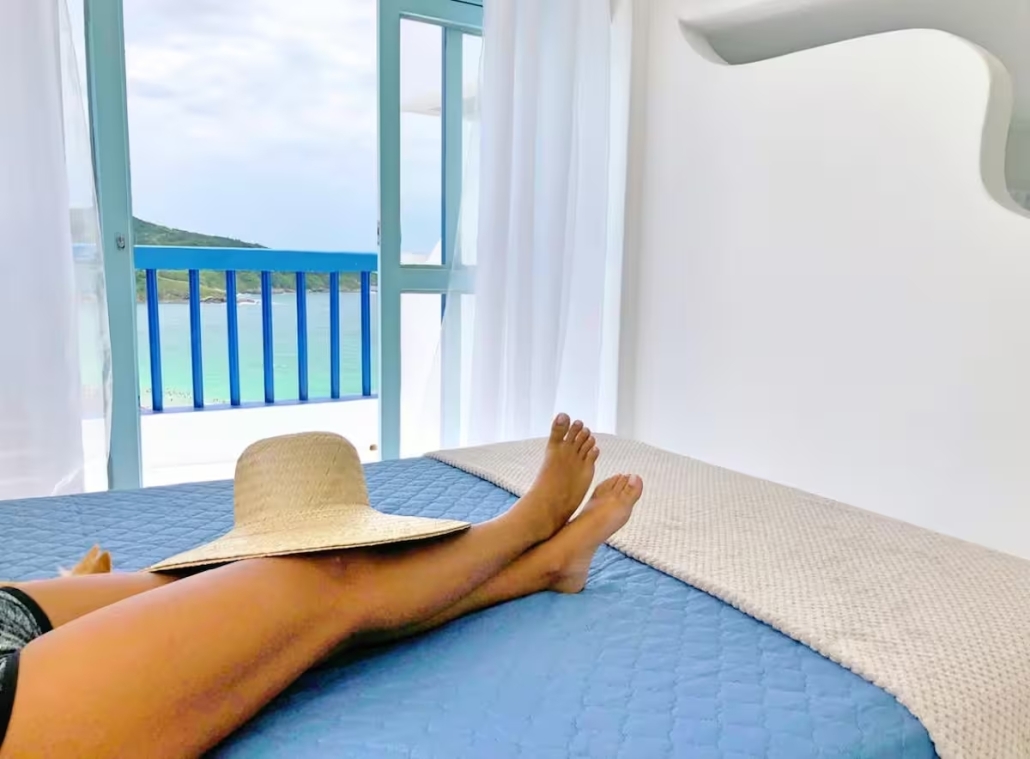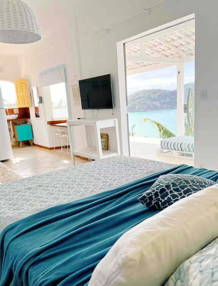 Privativo, aconchegante e independente, o Loft Mykonos é o refúgio perfeito para descansar, apreciar o pôr do sol das varandas e viver dias inesquecíveis em Arraial do Cabo.