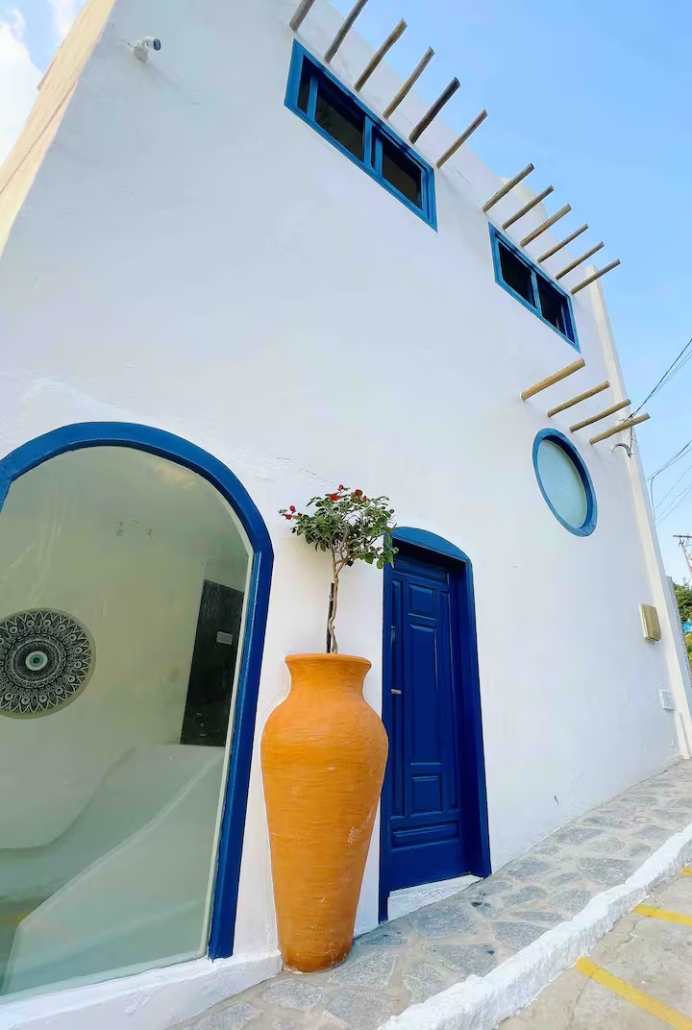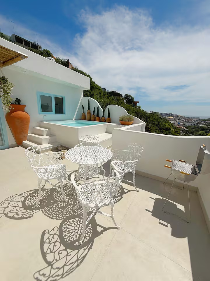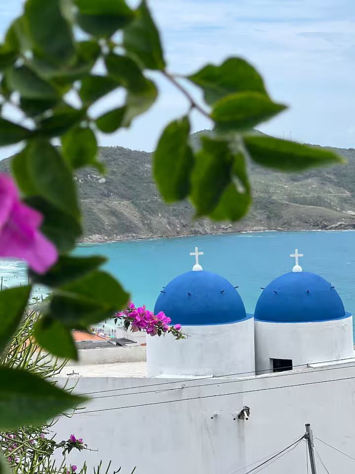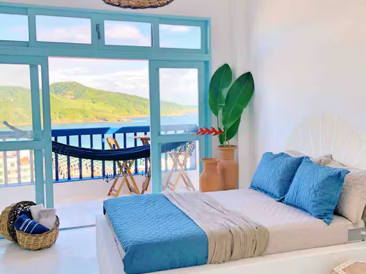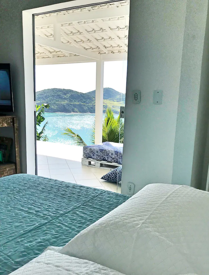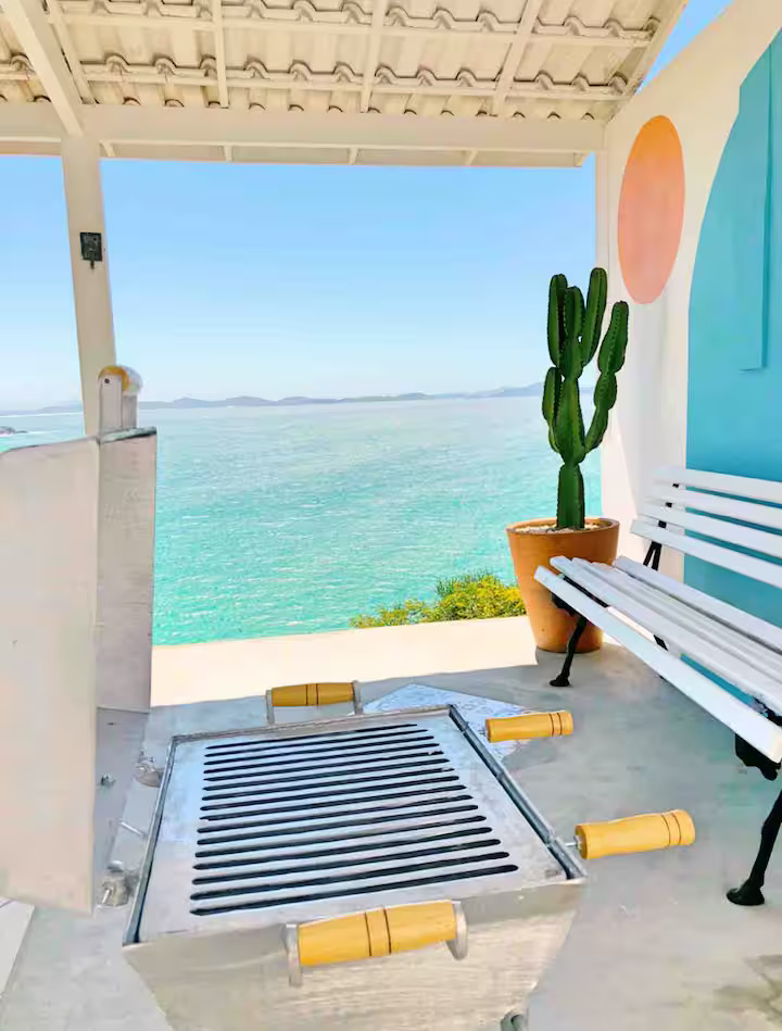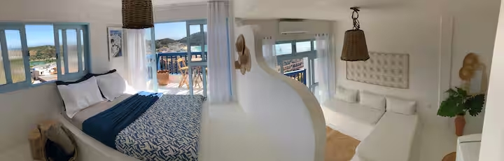 Essa acomodação localiza-se no alto do canto direito da Prainha, em Arraial do Cabo. É um espaço exclusivo e encantador em estilo grego, minimalista e refrescante, que oferece uma vista espetacular para o mar azul-turquesa.